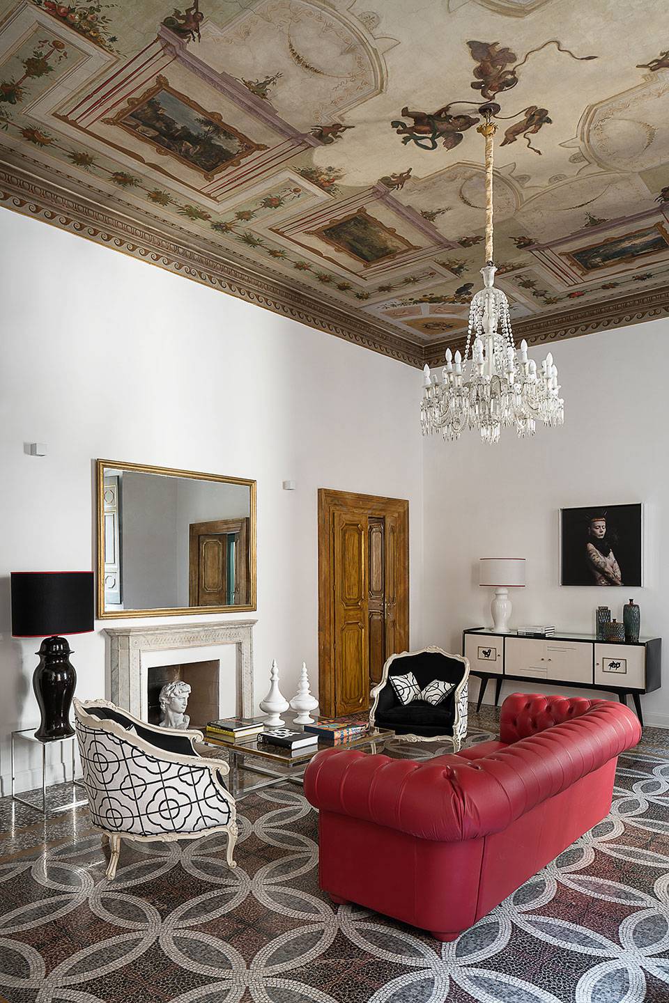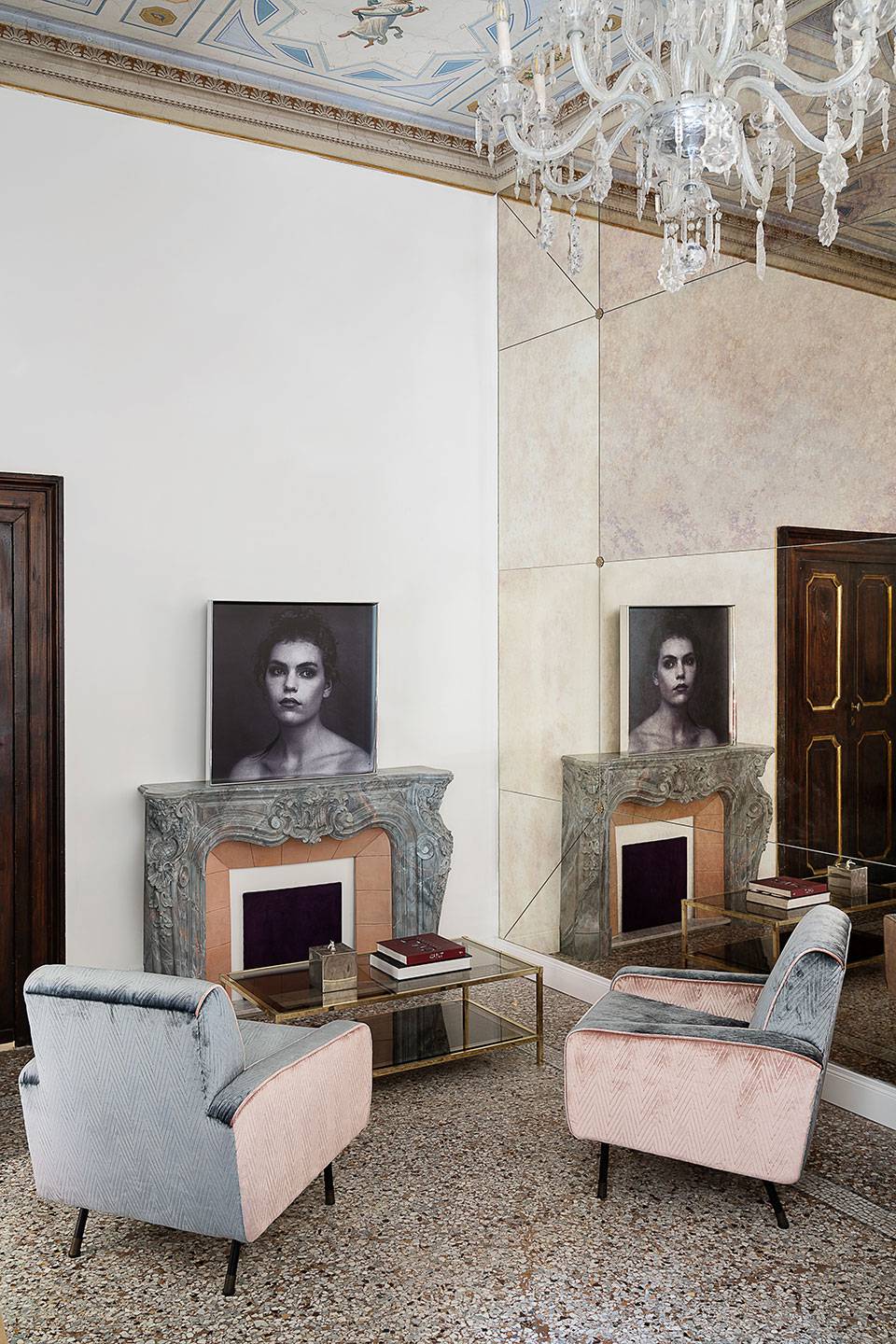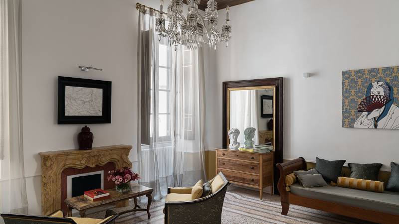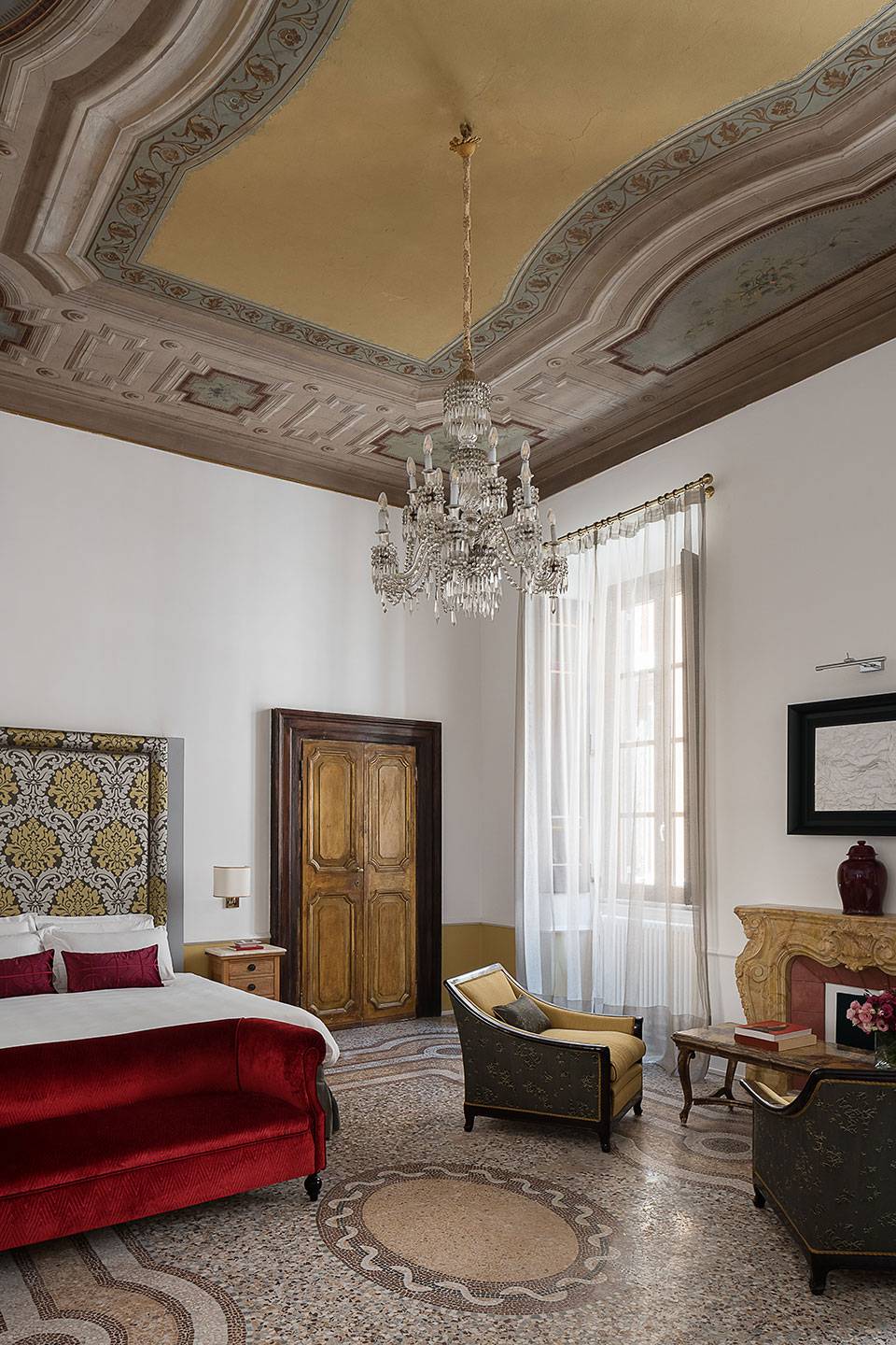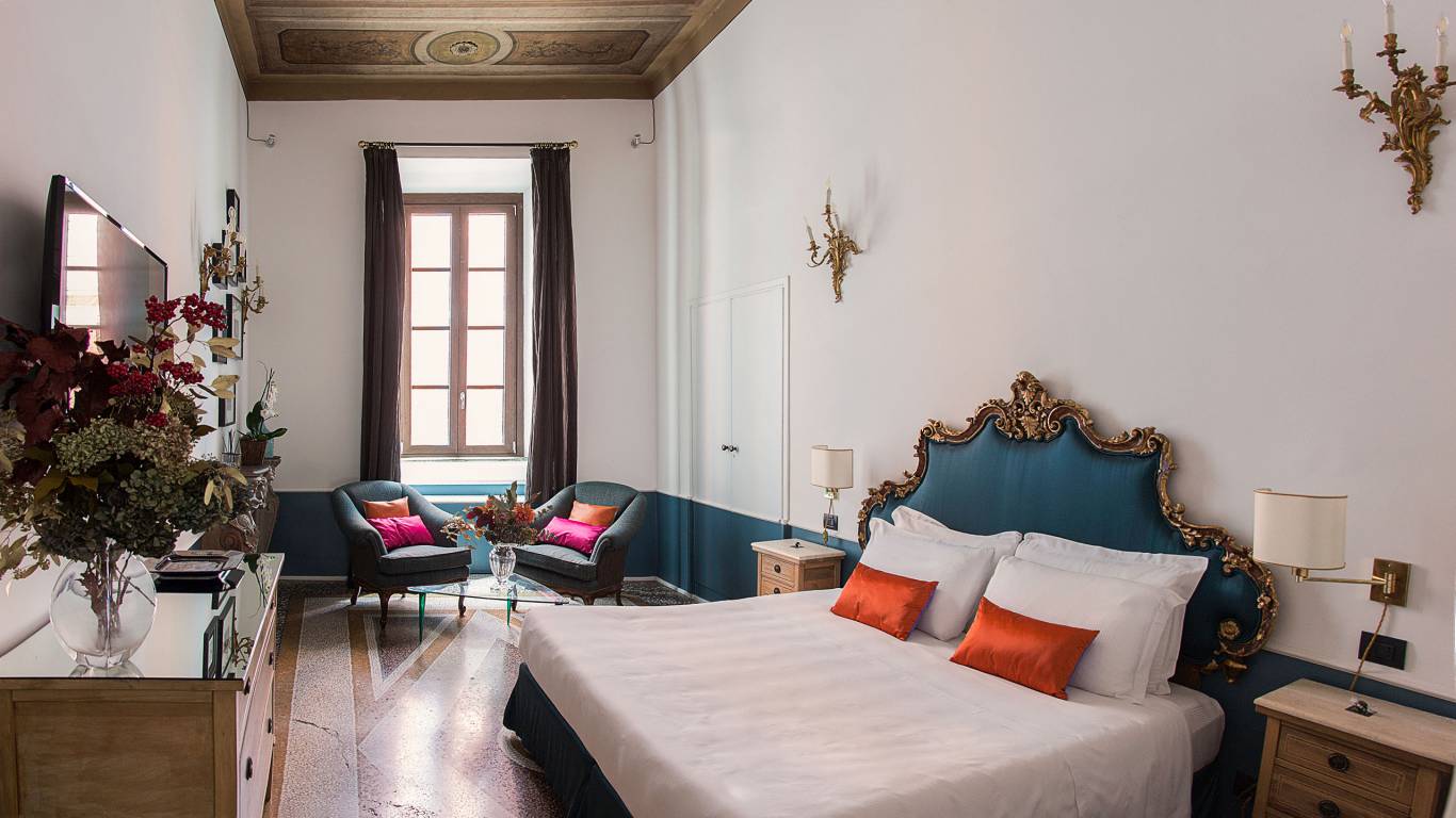 De vijf suites beschikken ieder over een unieke inrichting, de hoge plafonds zijn beschilderd met fresco's en de vloeren zijn bekleed met mozaieken in Venetiaanse stijl.