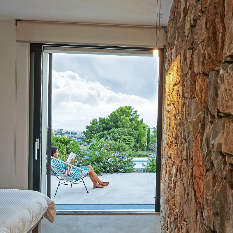 Een romantisch vakantiehuis voor twee op een uitgelezen, serene locatie. Een oase van privacy en rust. Het huis ligt bovenop een heuvel en biedt een adembenemend uitzicht op zee.
