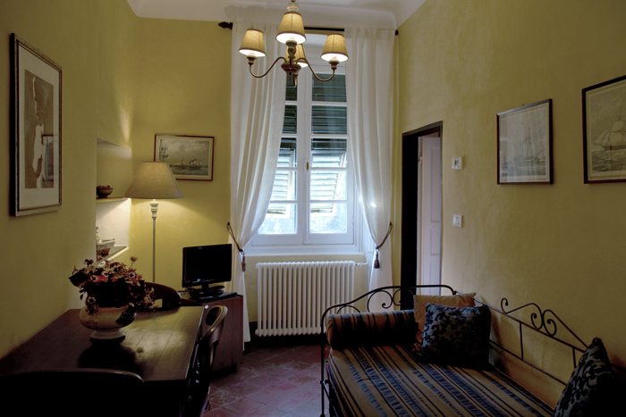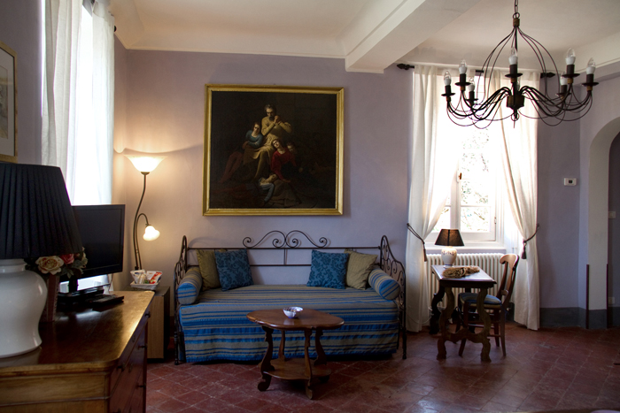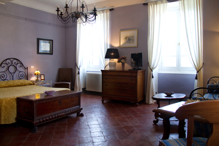 In de 18de eeuwse villa en in de verderop gelegen voormalige landarbeiderswoning bevinden zich de gastenverblijven en appartementen. De ruime kamers zijn stijlvol ingericht met antieke meubelen; aan de wanden hangen oude prenten en schilderijen.