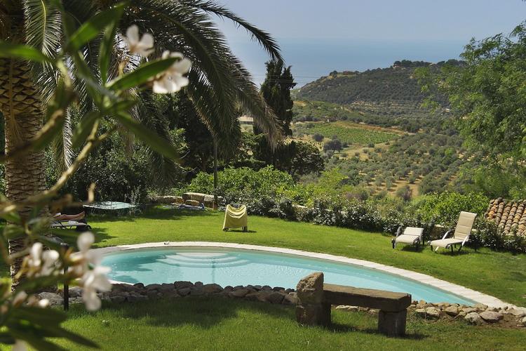 In de tuin ligt het zwembad en op loopafstand bevindt zich een pizzeria.