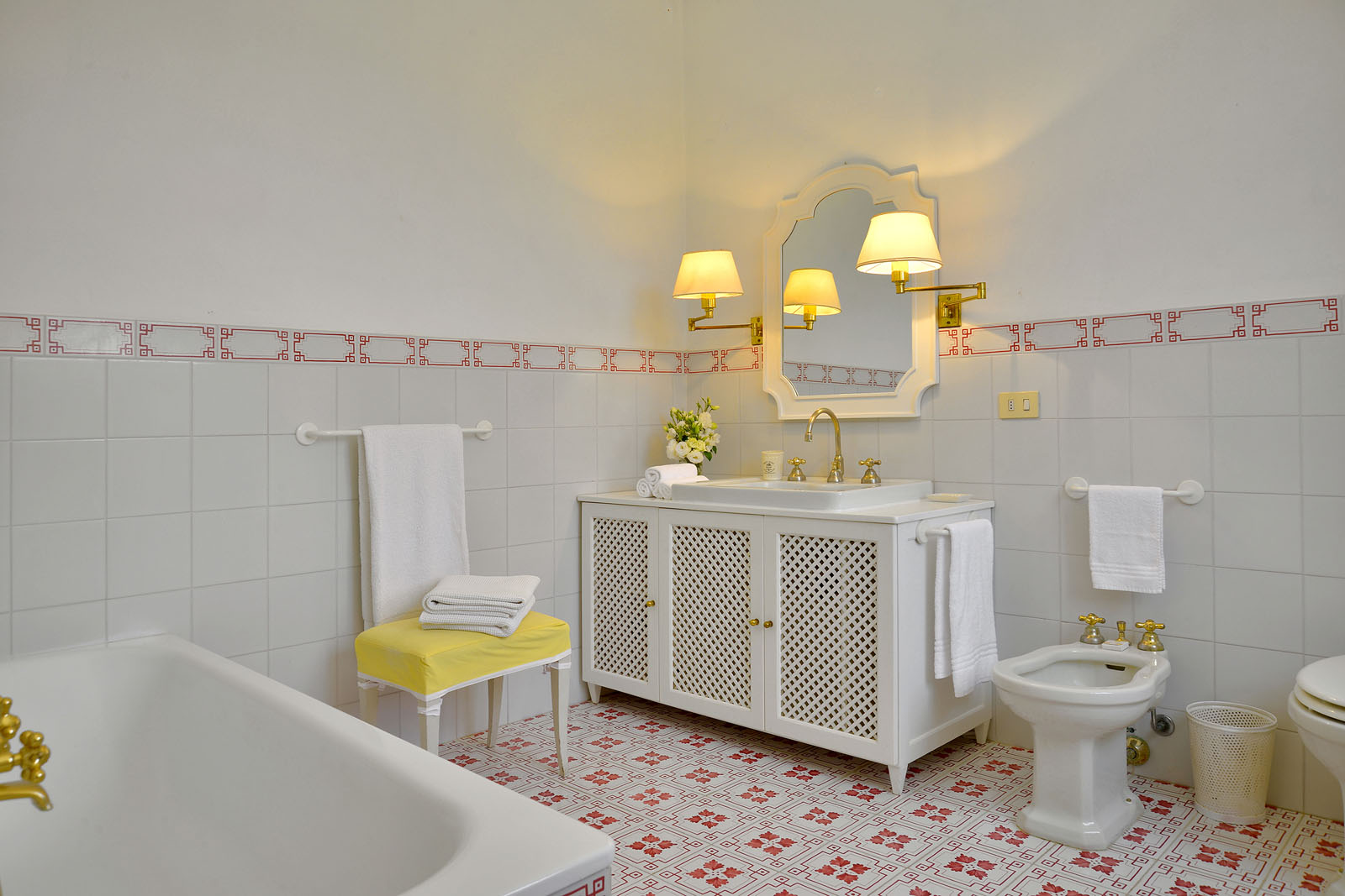 Op de eerste etage bevinden zich vier tweepersoons slaapkamers, ieder met een eigen badkamer.