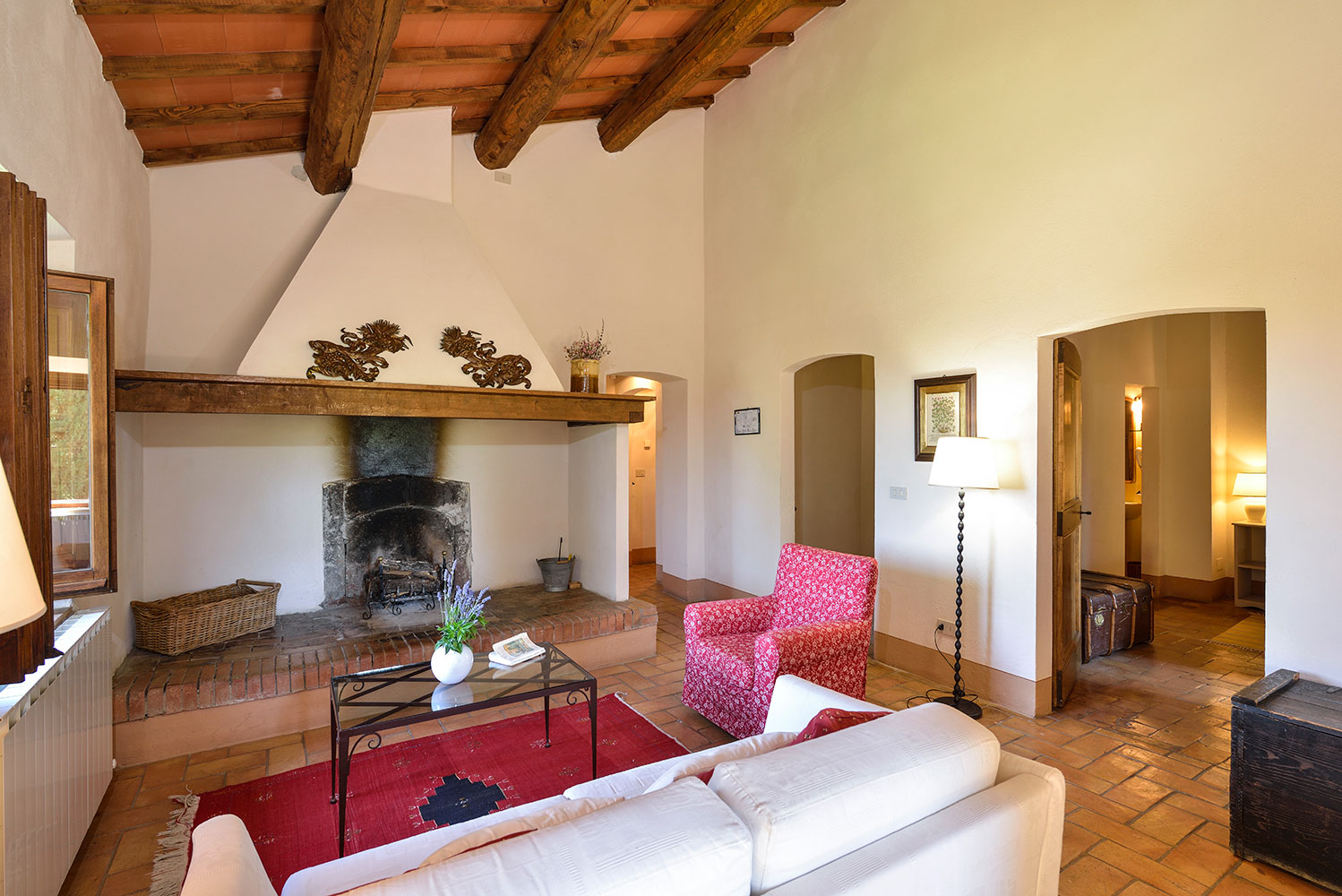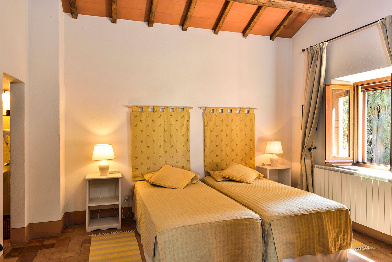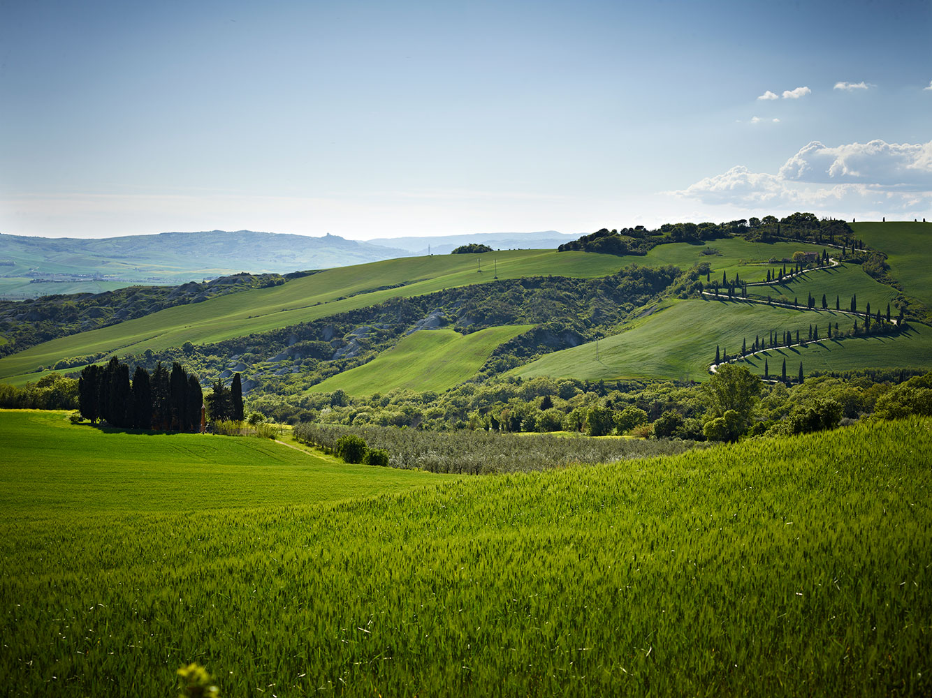 Deze villa kent misschien wel het meest iconische uitzicht van Toscane: de landweg omzoomd met cipressen die zich omhoog slingert langs de heuvel.