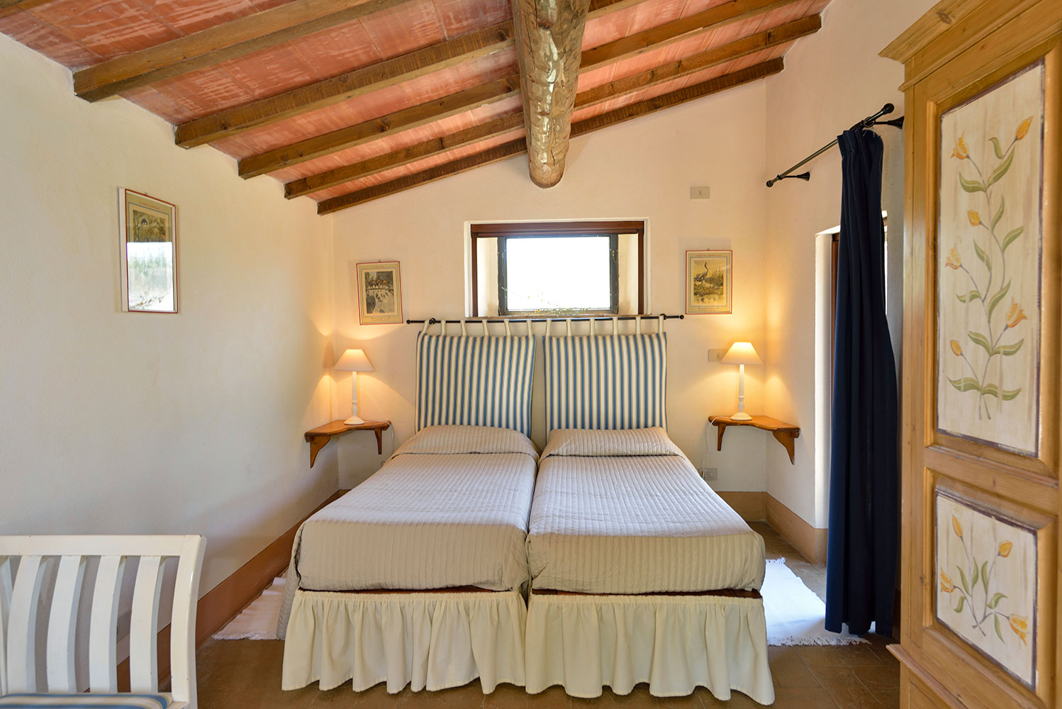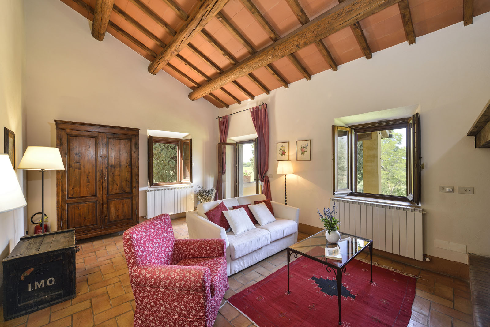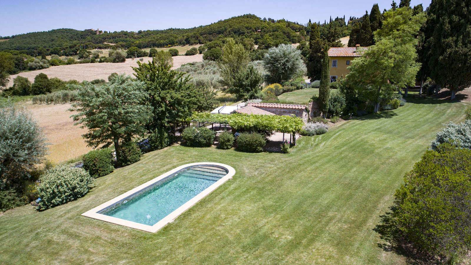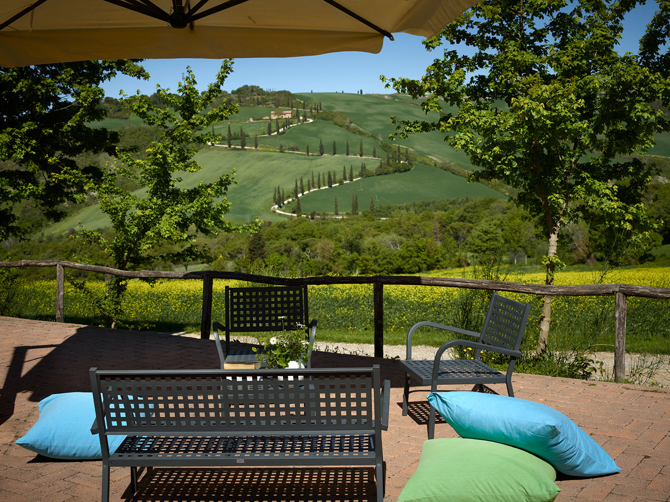 Je verblijft hier in het weidse en open landschap van de Val d'Orcia op tien kilometer rijden van Montepulciano. Iets verder zijn Pienza en Montalcino gelegen. Het landhuis wordt omgeven door het karakteristieke landschap van graanvelden, olijfbomen en cipressen. Toscane in optima forma.