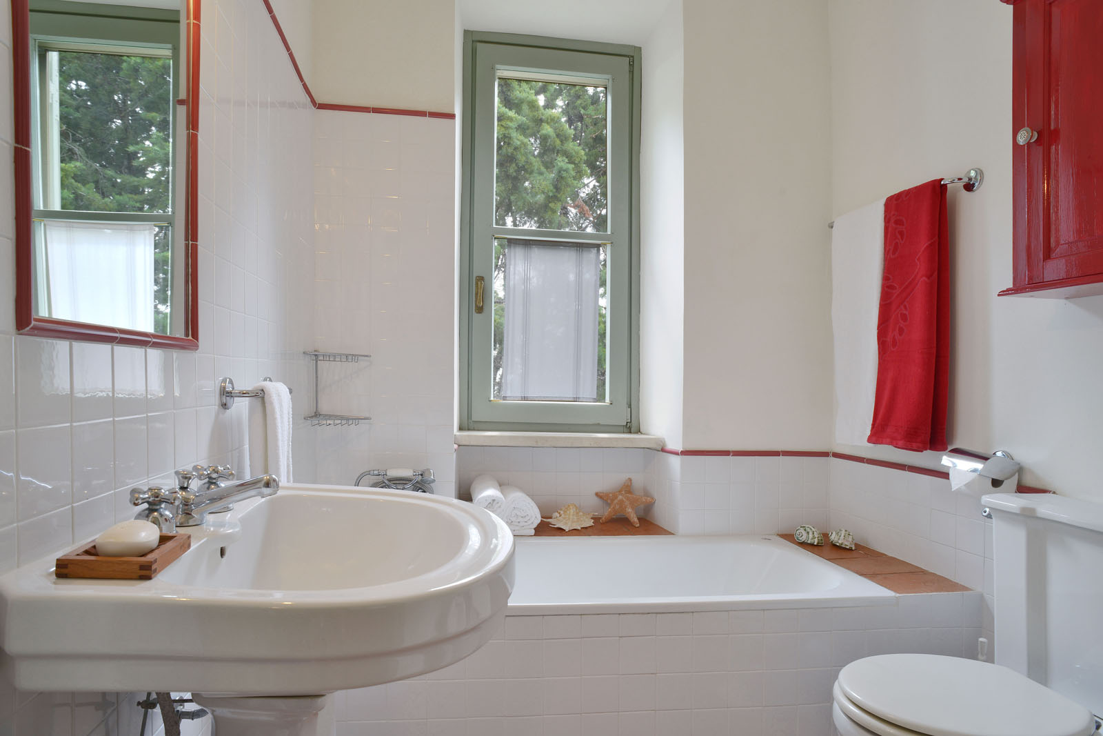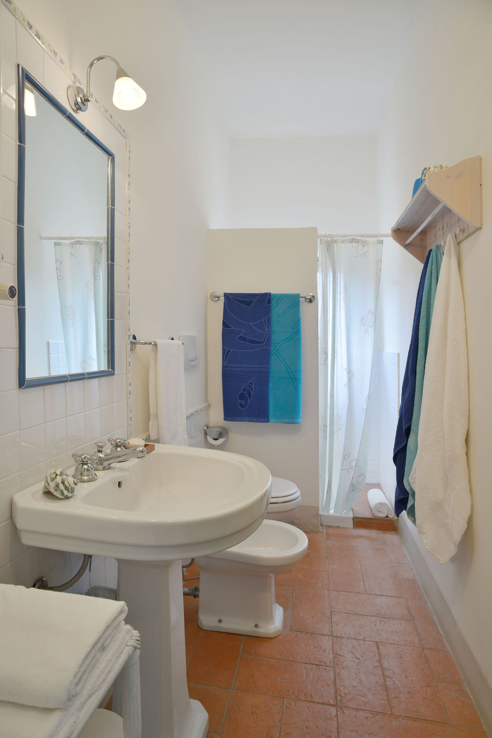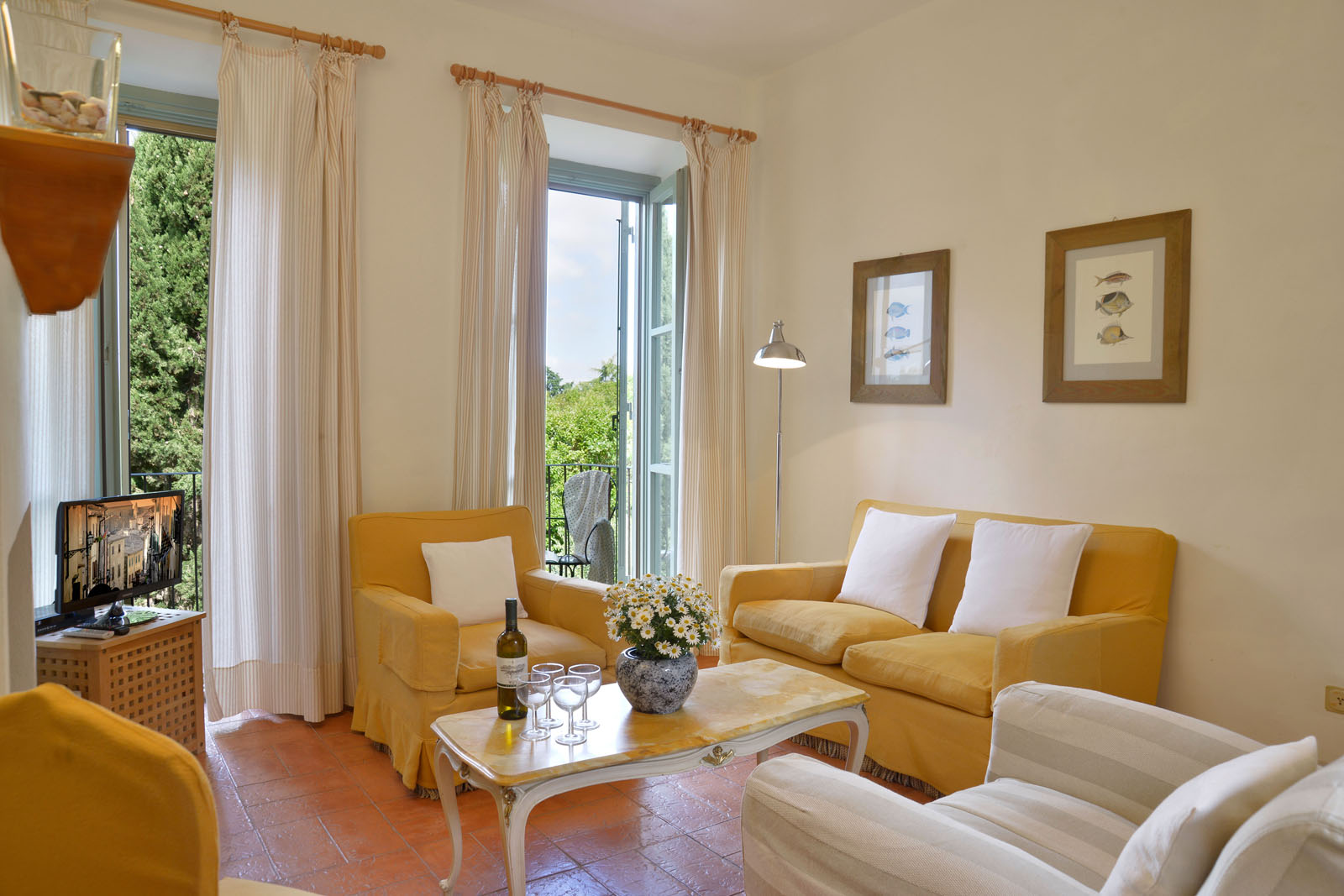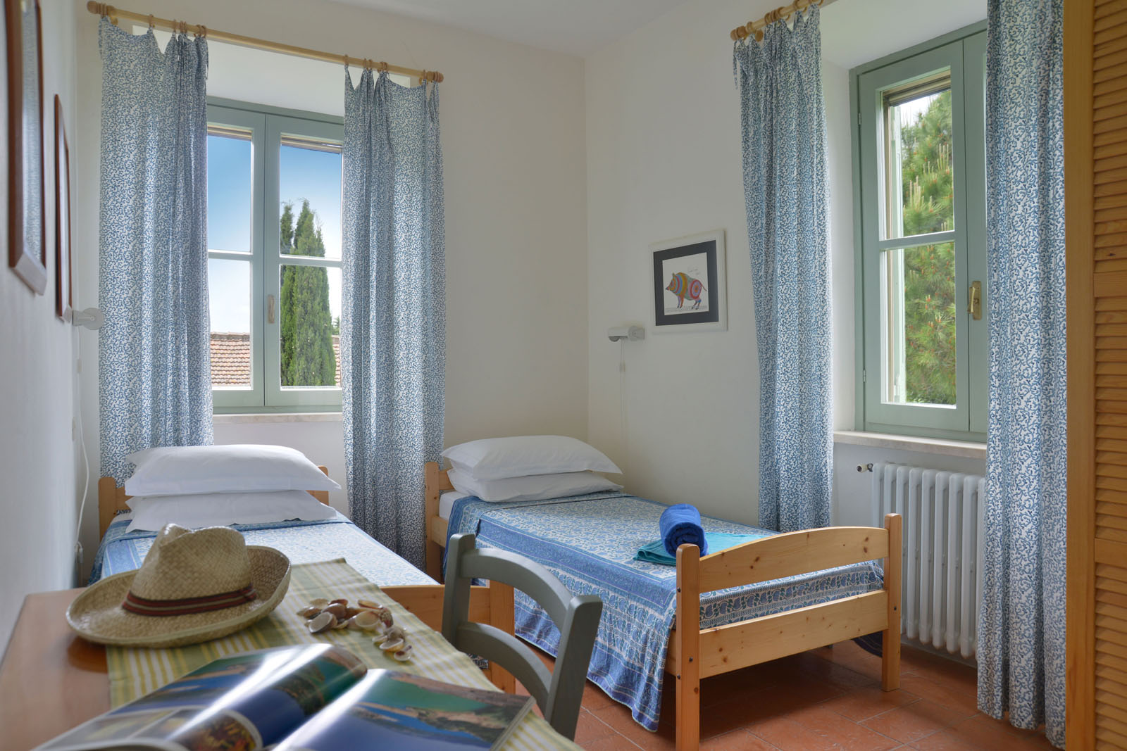 Op de eerste verdieping van de villa ligt dit zespersoons appartement dat bestaat uit een woonkamer met aansluitend terras, een keuken, drie tweepersoons slaapkamers en twee badkamers.