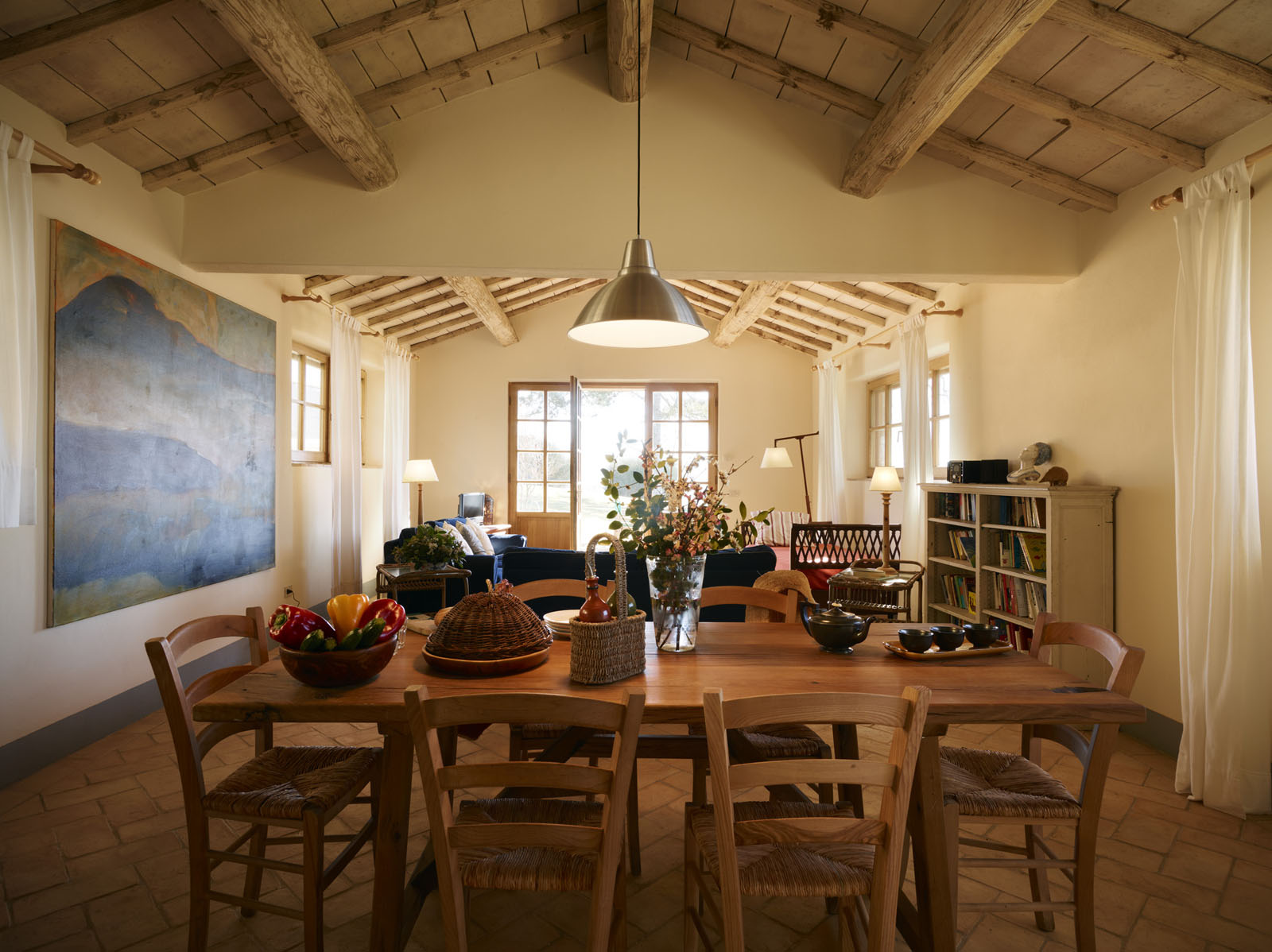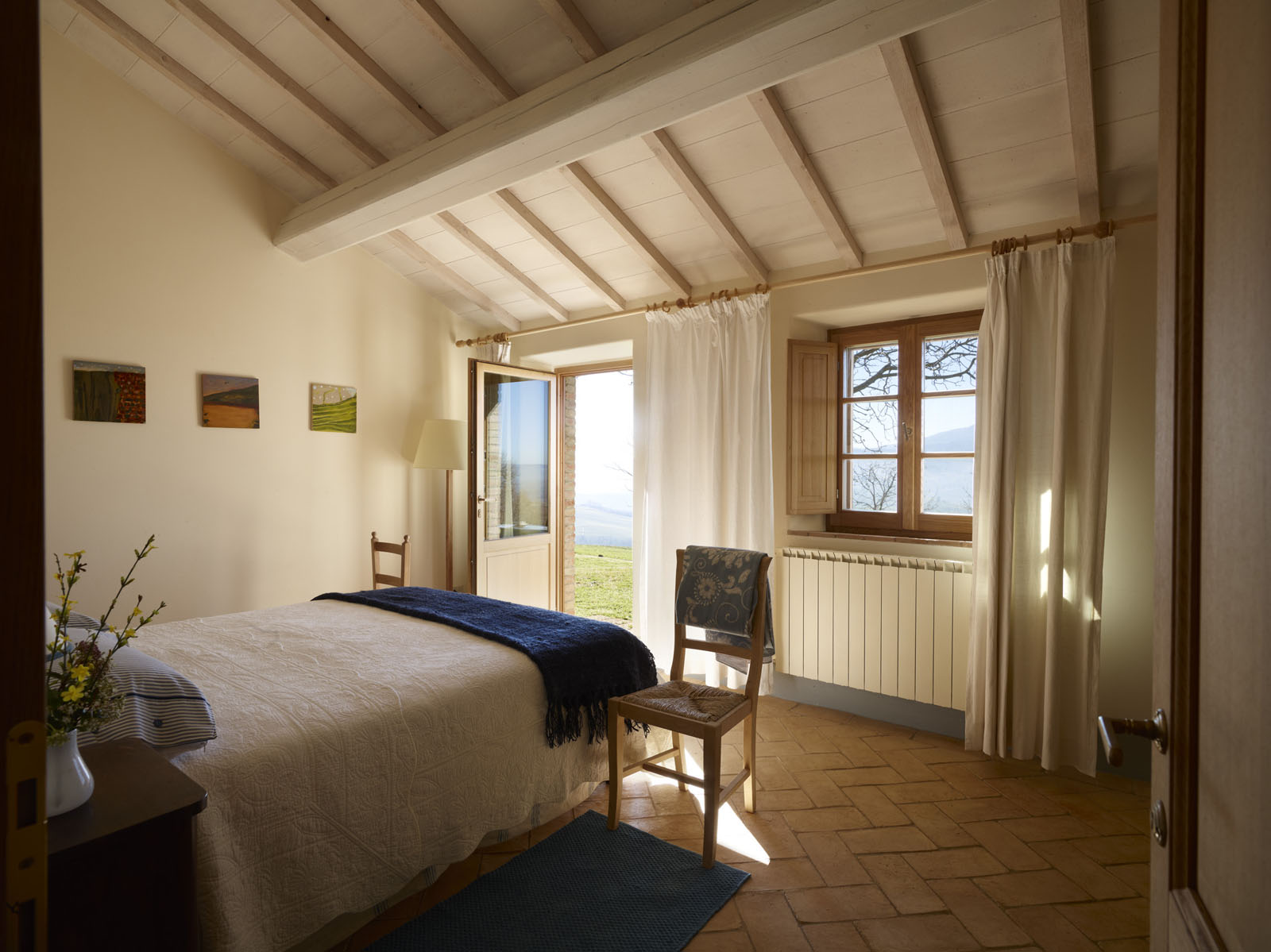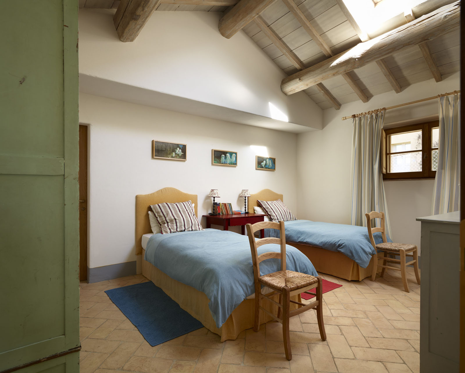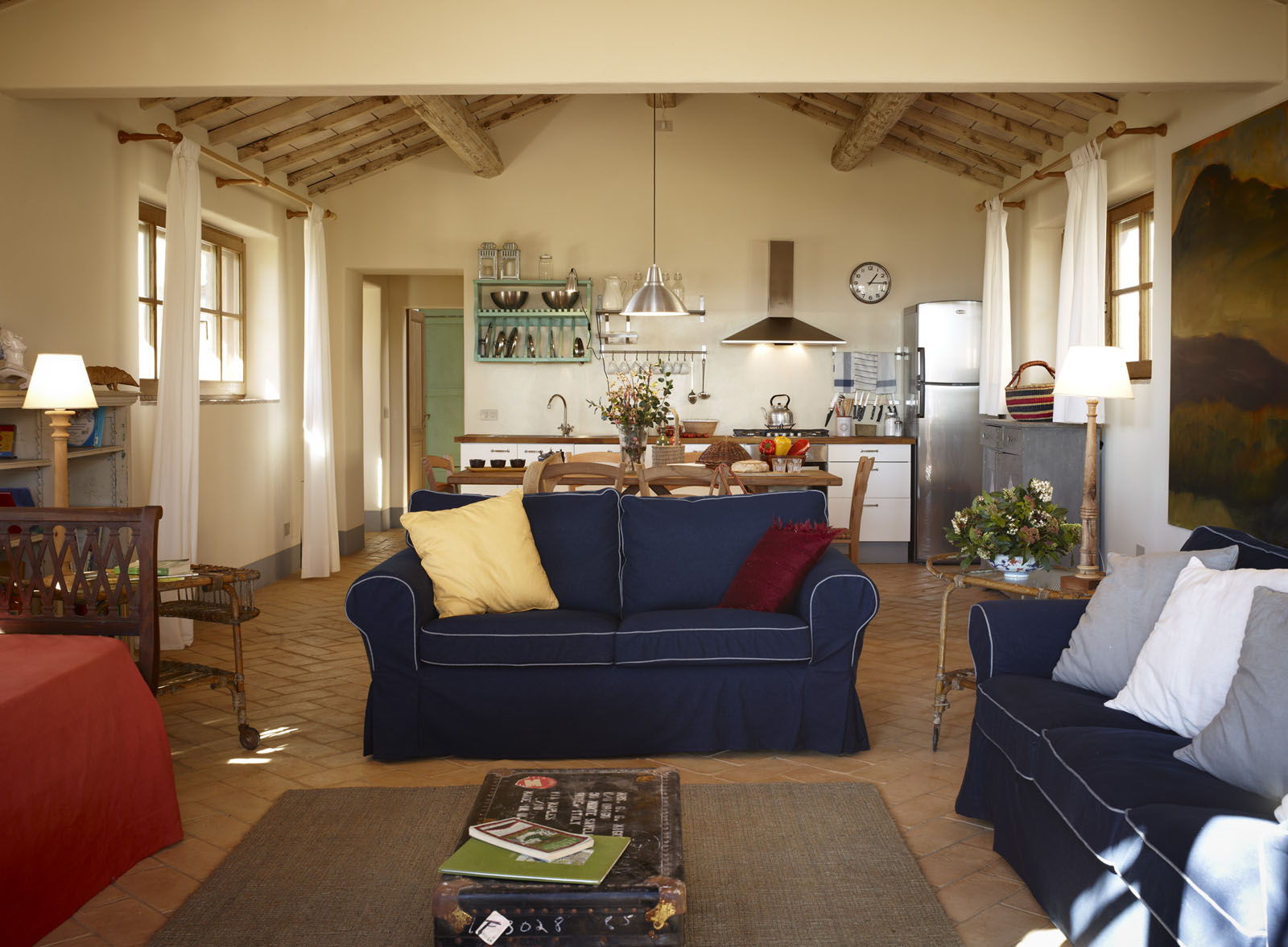Het ruime, lichte huis strekt zich uit over de begane grond en is ingericht door een kunstenaar. De woonkamer beschikt over een open keuken. Er zijn drie tweepersoons slaapkamers, elk met een eigen badkamer.