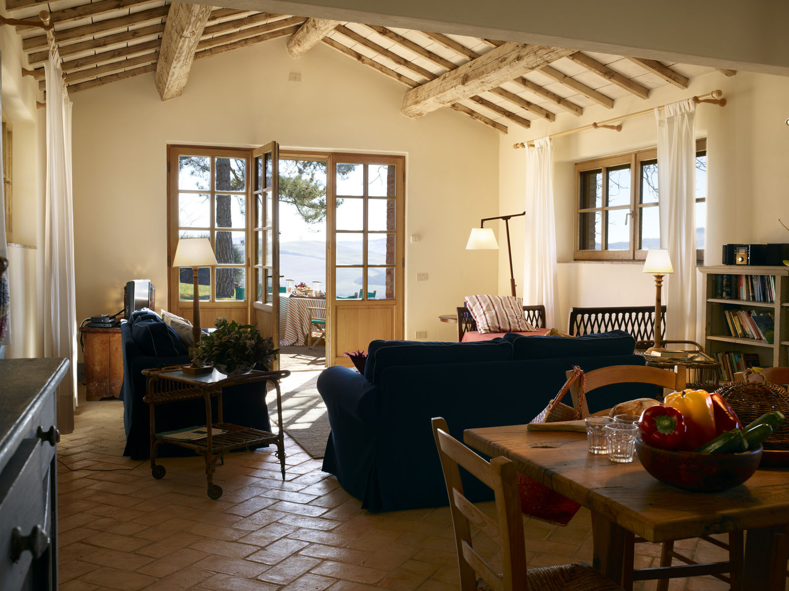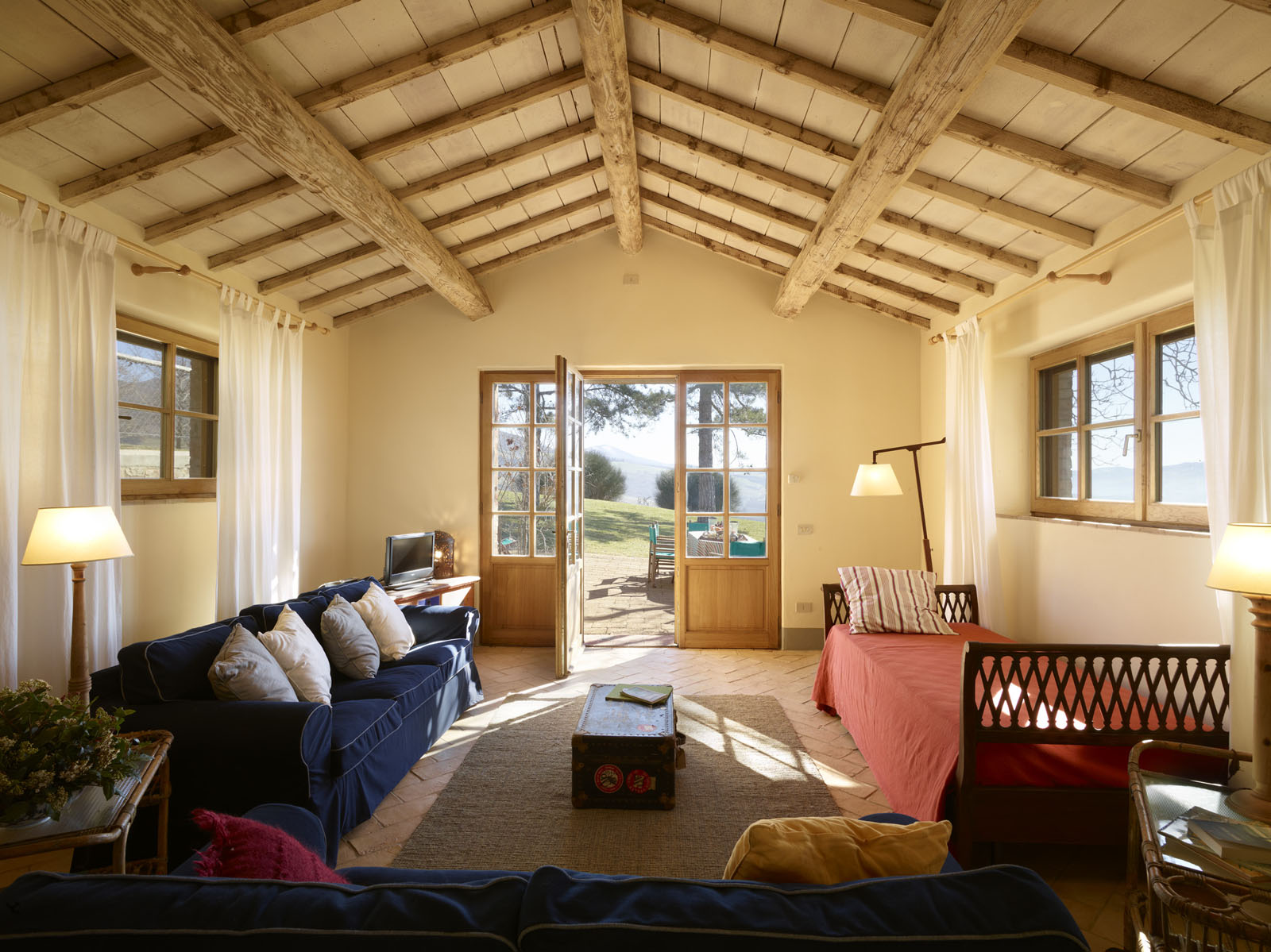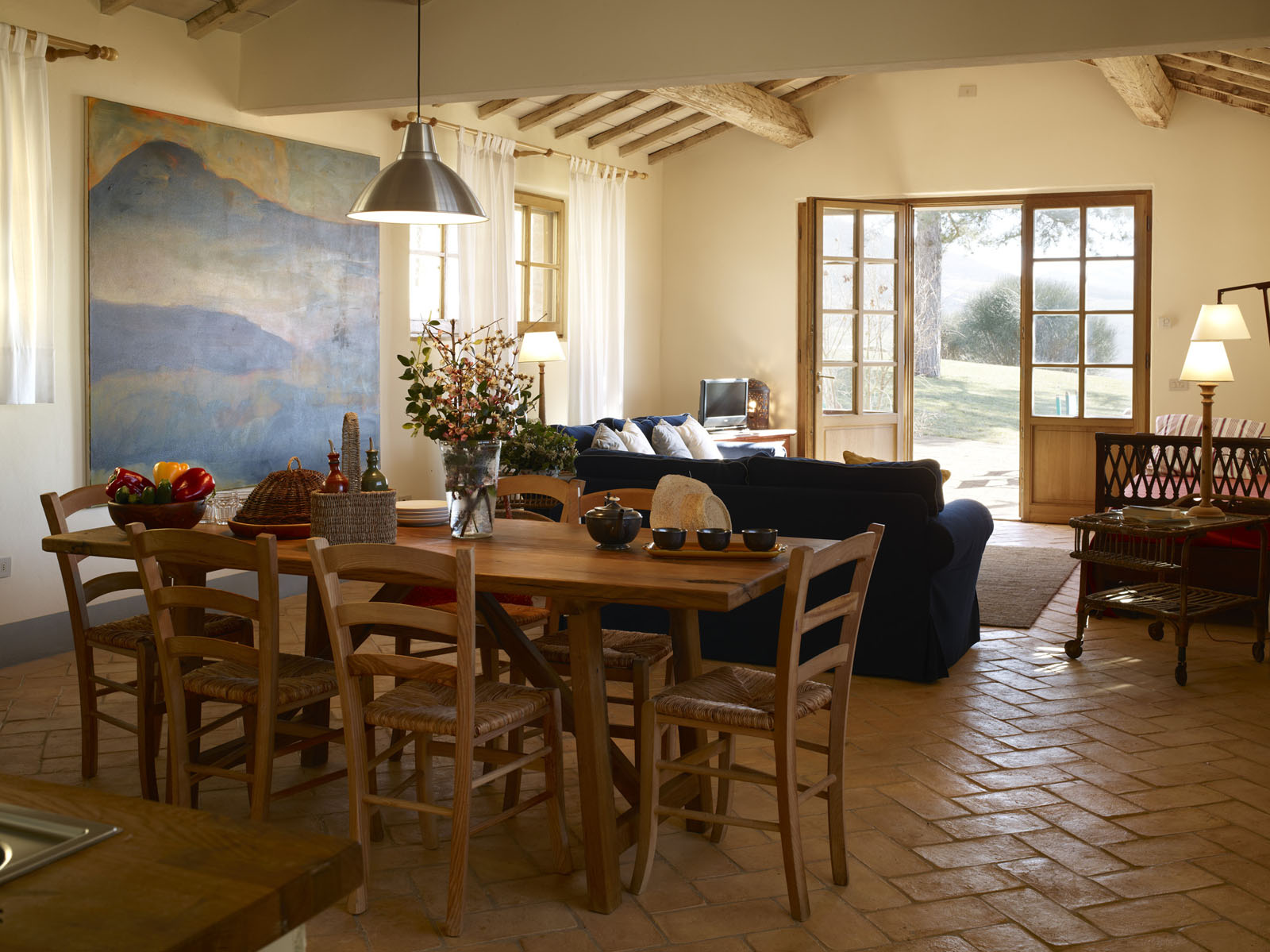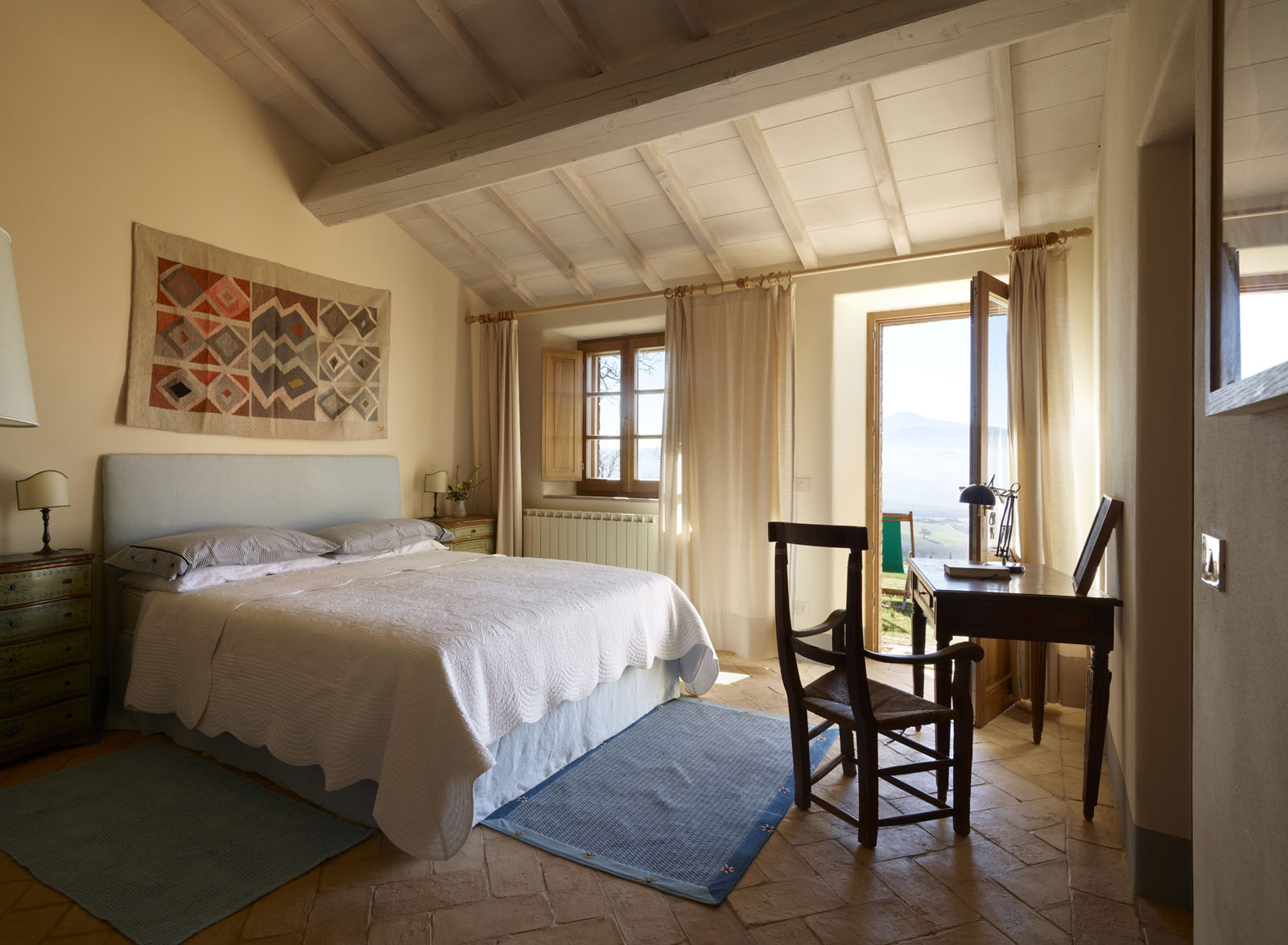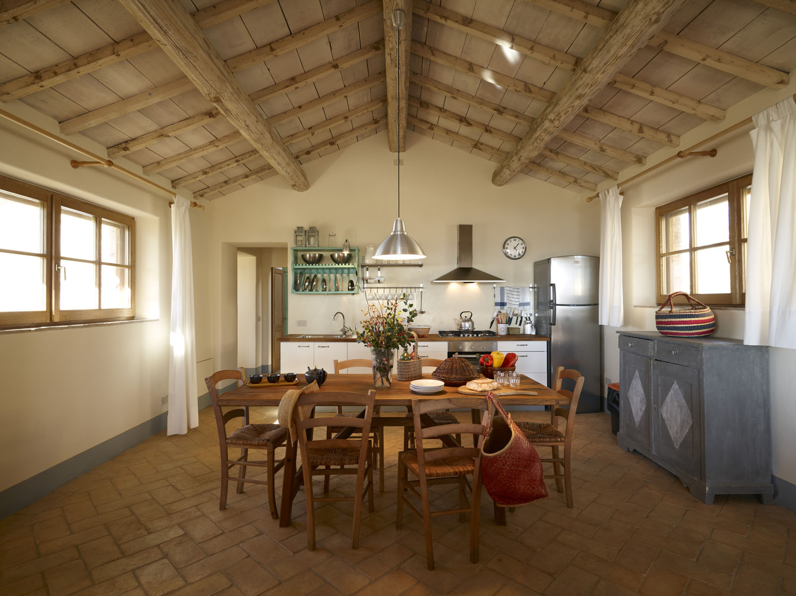 Het ruime, lichte huis strekt zich uit over de begane grond en is ingericht door een kunstenaar. De woonkamer beschikt over een open keuken. Er zijn drie tweepersoons slaapkamers, elk met een eigen badkamer.