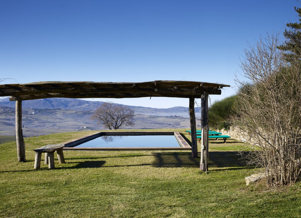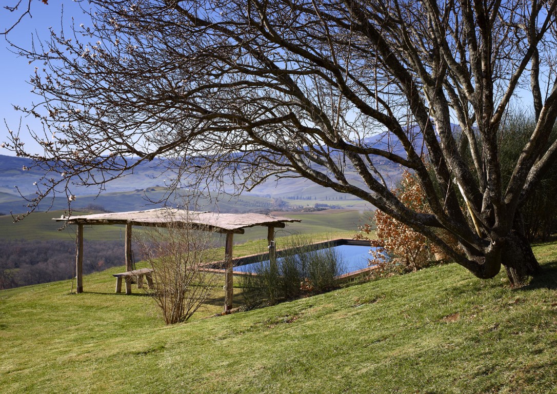 Via een landweg bereik je dit vrijstaande vakantiehuis met een adembenemend uitzicht op het oogstrelende dal van de Orcia.