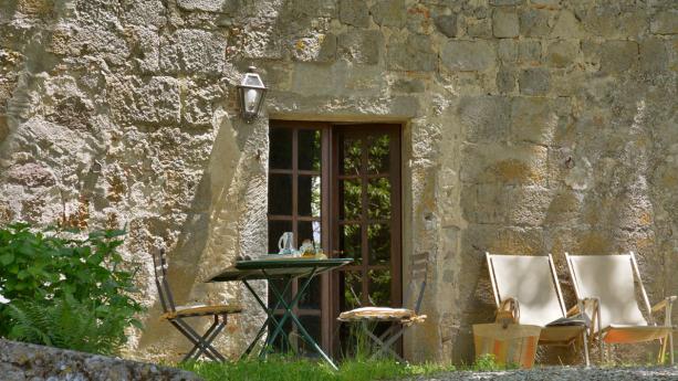 In de schaduw van eeuwenoude kastanjebomen liggen verspreid over het landgoed vijf huizen, waarin de sfeer van het verleden bewaard is gebleven.