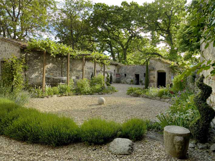 In de schaduw van eeuwenoude kastanjebomen liggen verspreid over het landgoed vijf huizen, waarin de sfeer van het verleden bewaard is gebleven.