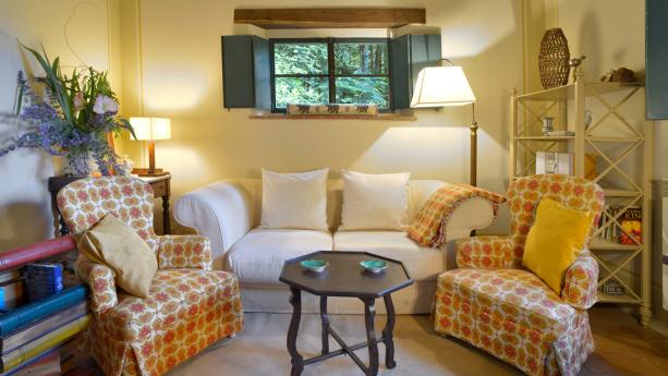 In de schaduw van eeuwenoude kastanjebomen liggen verspreid over het landgoed vijf huizen, waarin de sfeer van het verleden bewaard is gebleven.