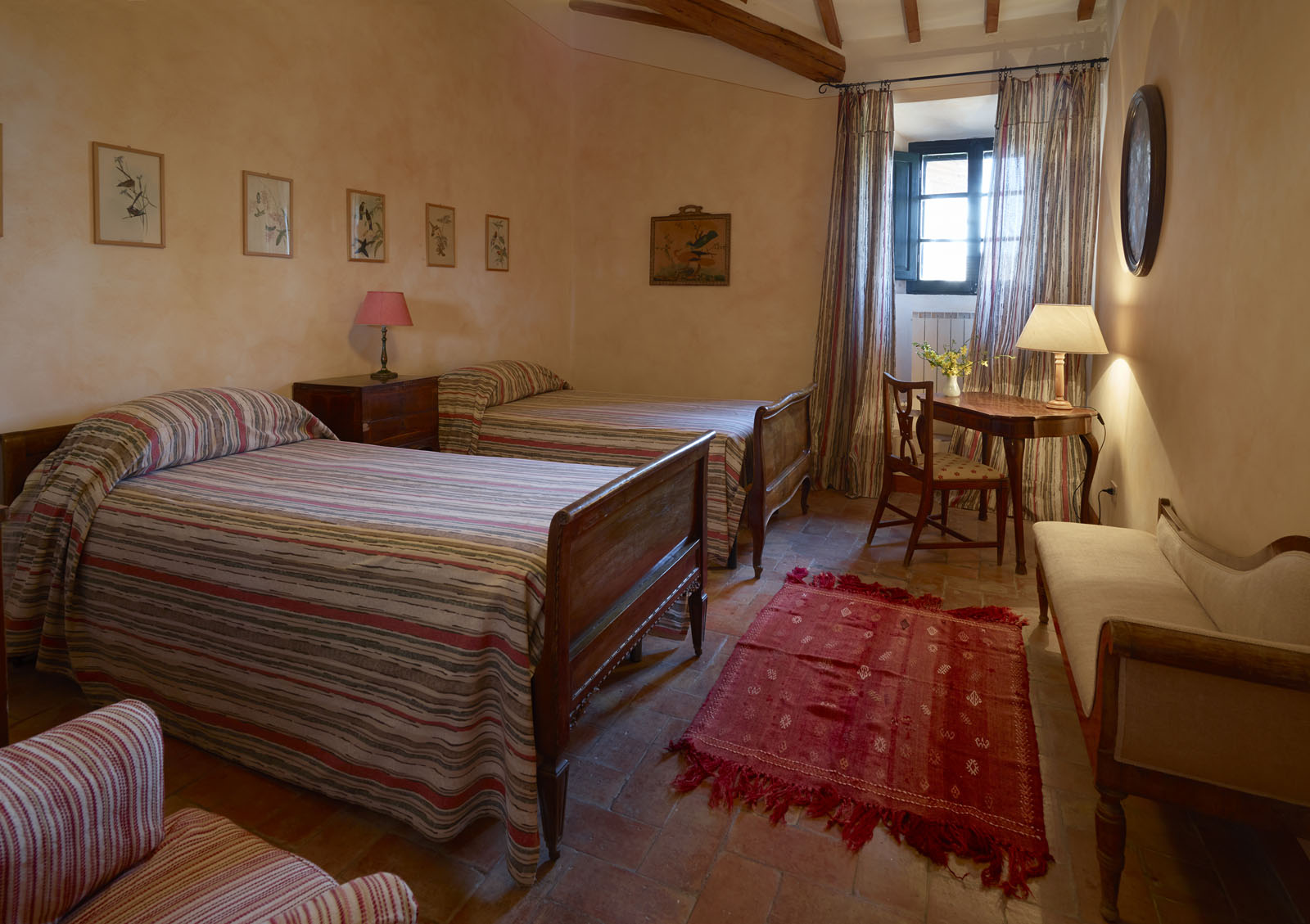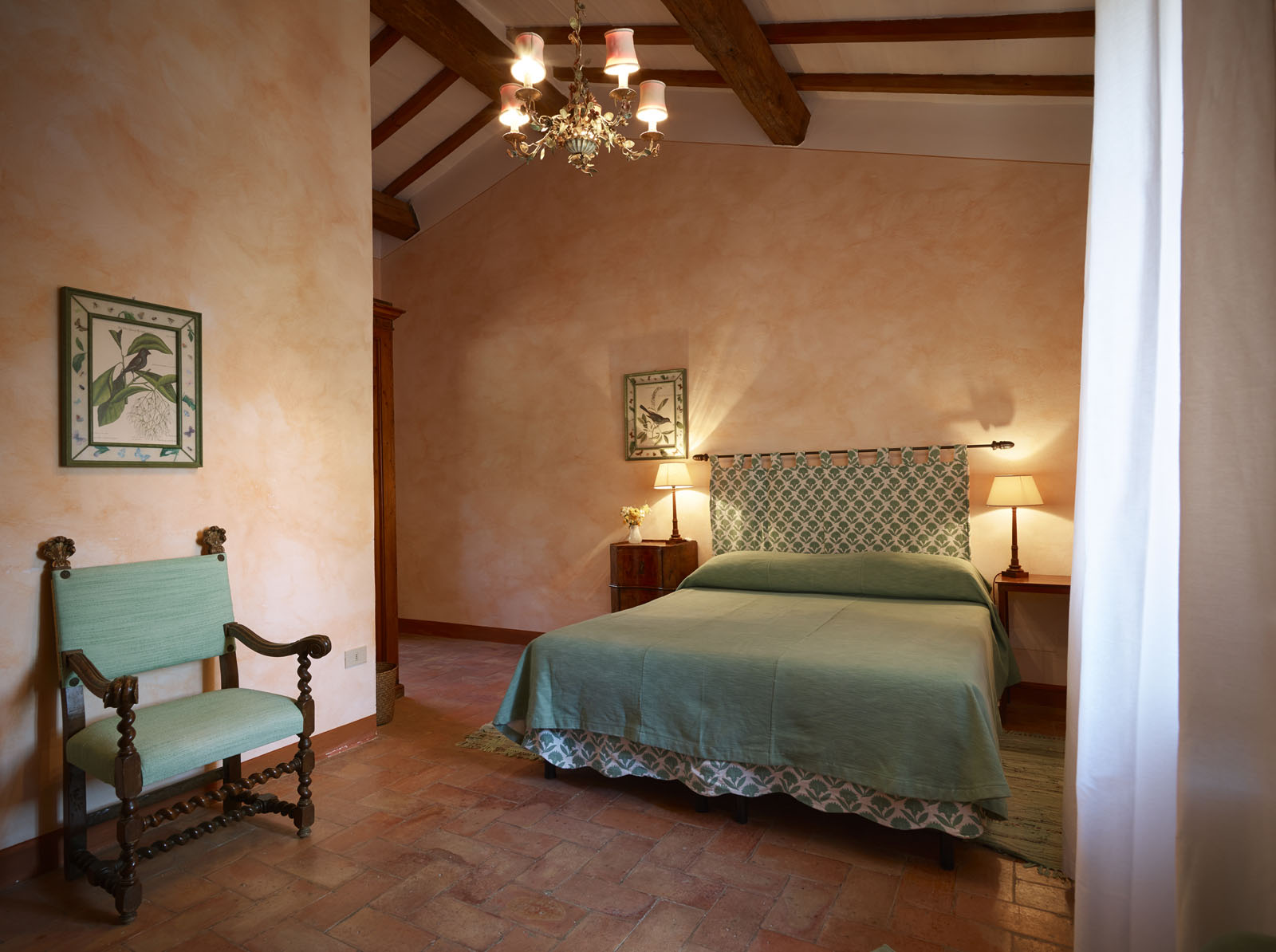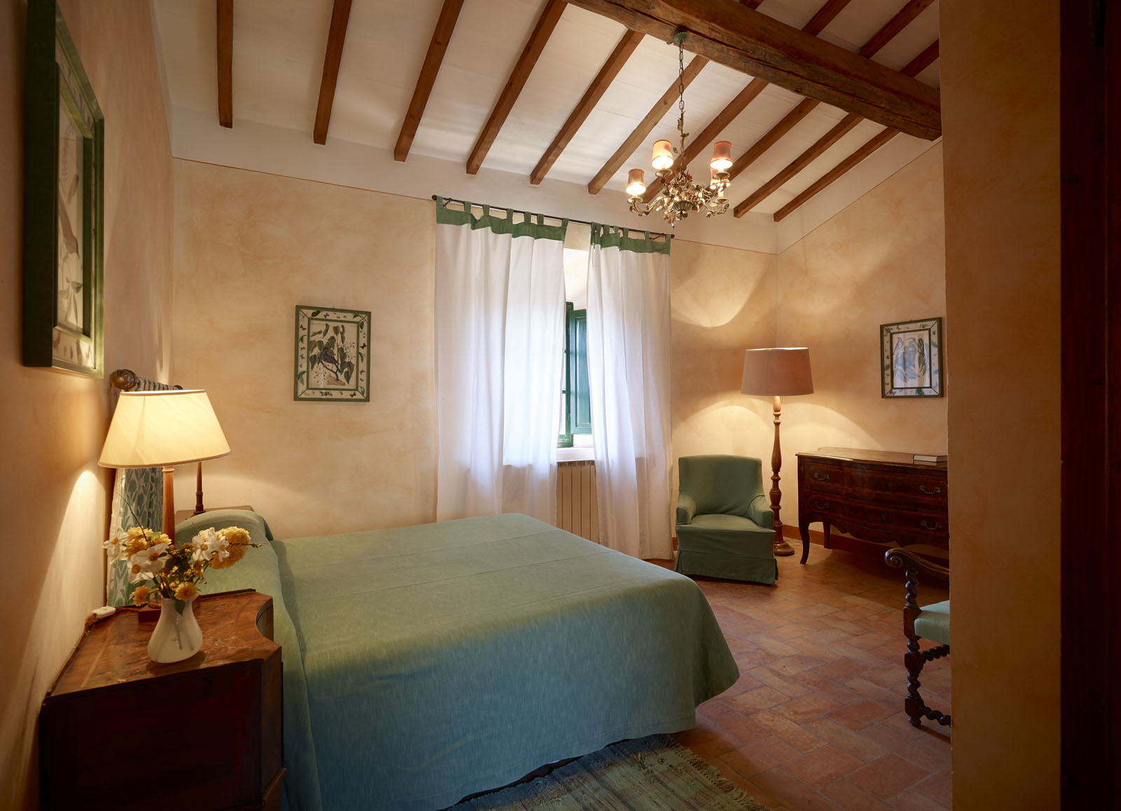 Midden in de Val d'Orcia ligt dit historische landgoed. De zes appartementen in de centrale fattoria zijn gegroepeerd rond een grote binnenhof begroeid met lindebomen, rozenstruiken, jasmijn en lavendel. Daarbuiten ligt een grote tuin met een zwembad en een tennisbaan. Elk appartement beschikt over een eigen zitje in de tuin. Het uitzicht over de vallei met de Monte Amiata in de verte is ongeƫvenaard.