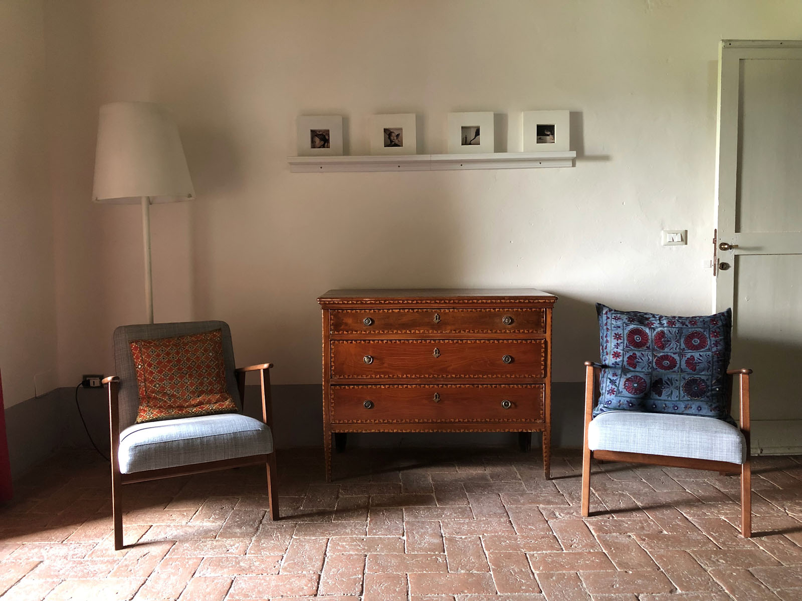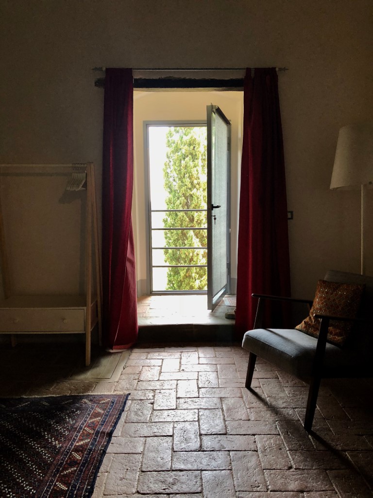 De accommodatie beschikt overr een woonkamer met open haard, een open keuken, twee tweepersoons slaapkamers en een badkamer. De originele 19de eeuwse terracotta vloeren zijn bewaarde gebleven evenals de authentieke dakconstructie. Grote ramen zorgen voor een mooie lichtinval en bieden uitzicht op de historische tuin en het omringende heuvellandschap.