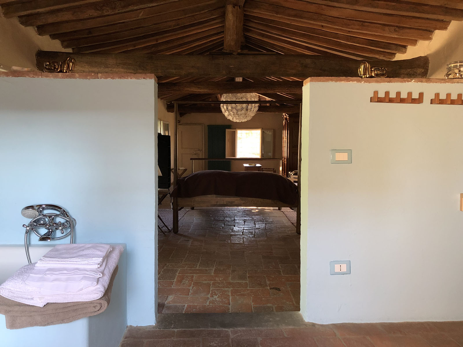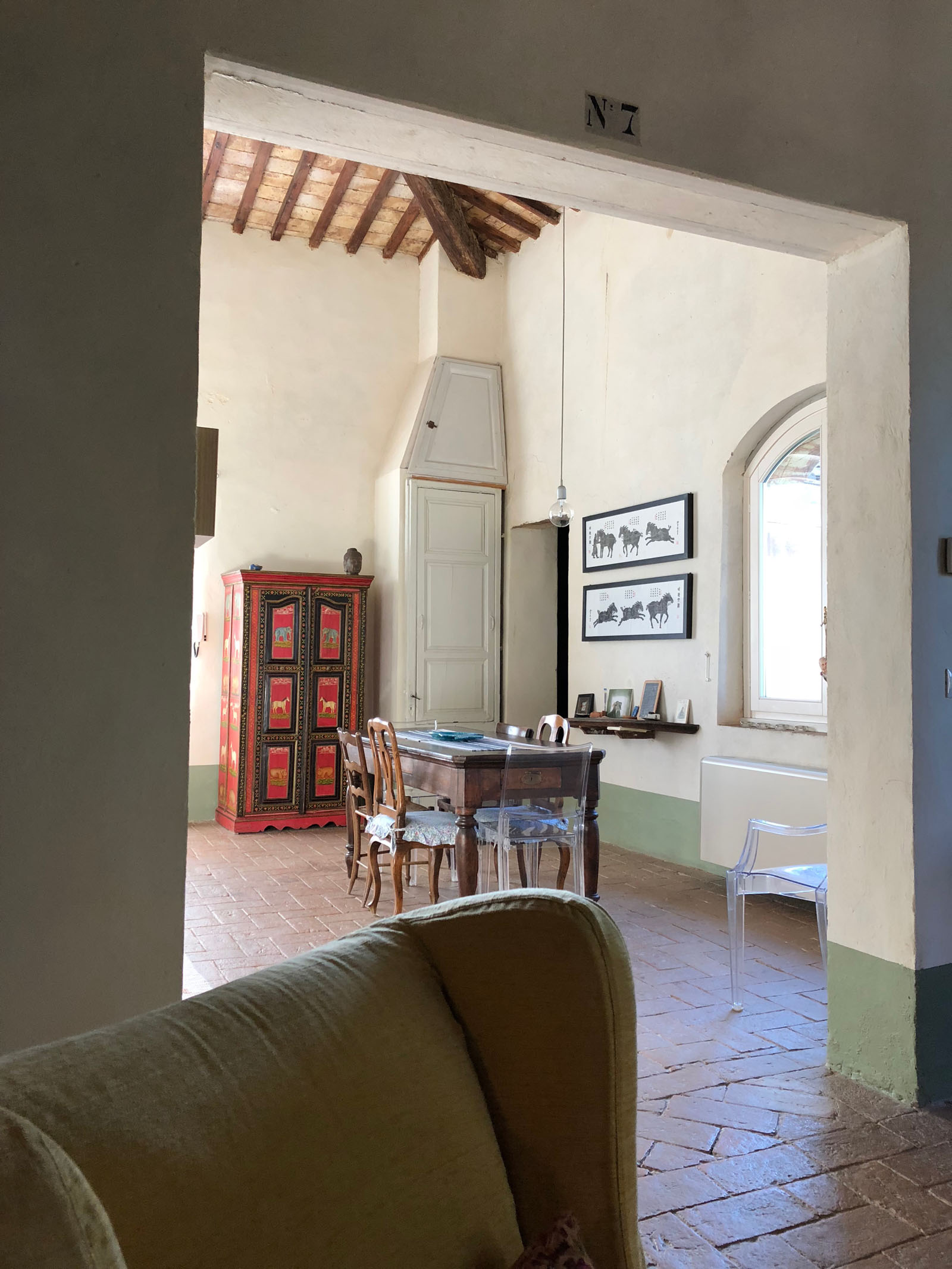 Liefde op het eerste gezicht voor wie houdt van het authentieke Toscane. Dit monumentale appartement -gesitueerd in een voormalige graanschuur- bevindt zich op de eerste verdieping, je komt binnen via een stenen trap.