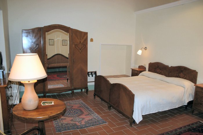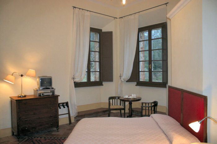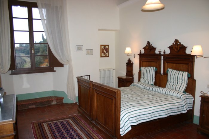Een brede trappartij met loggia geeft toegang tot de monumentale hal van de villa waaraan zes uitzonderlijk ruime gastenkamers grenzen. Deze kamers zijn ingericht met antieke meubelen en allen voorzien van een luxe badkamer.