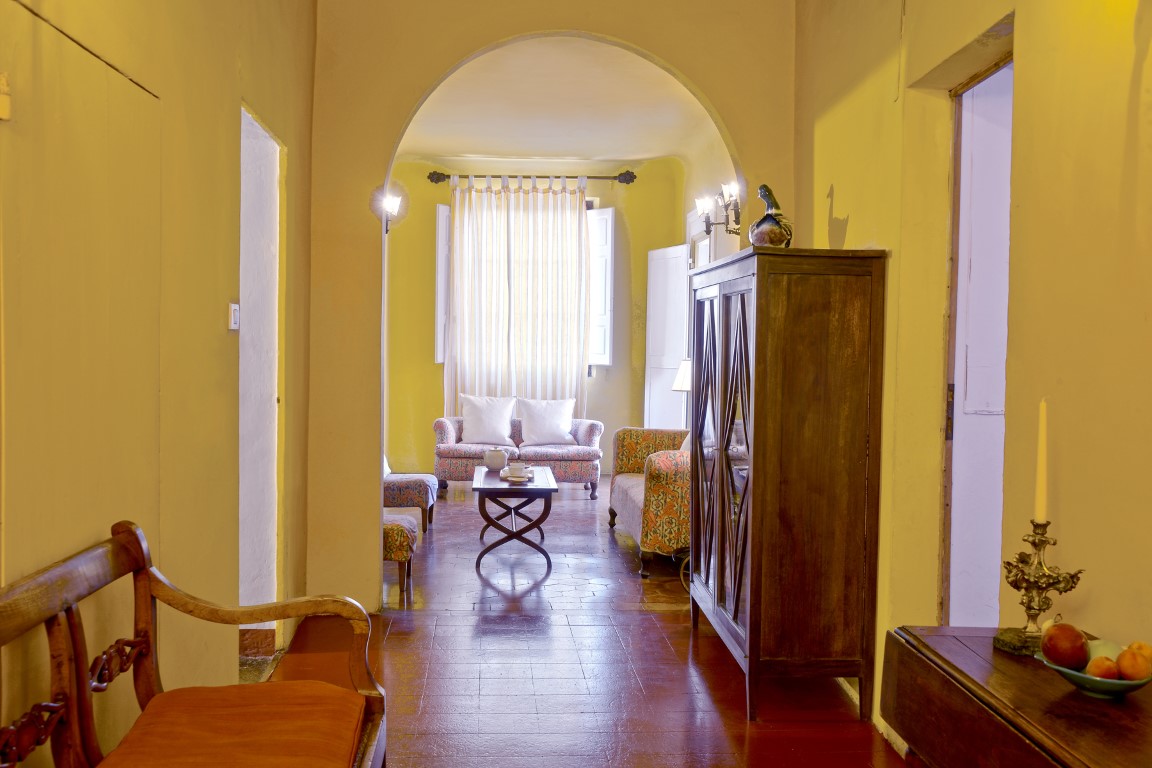 De entree geeft toegang tot de binnenplaats, waarop het grote terras uitkomt.