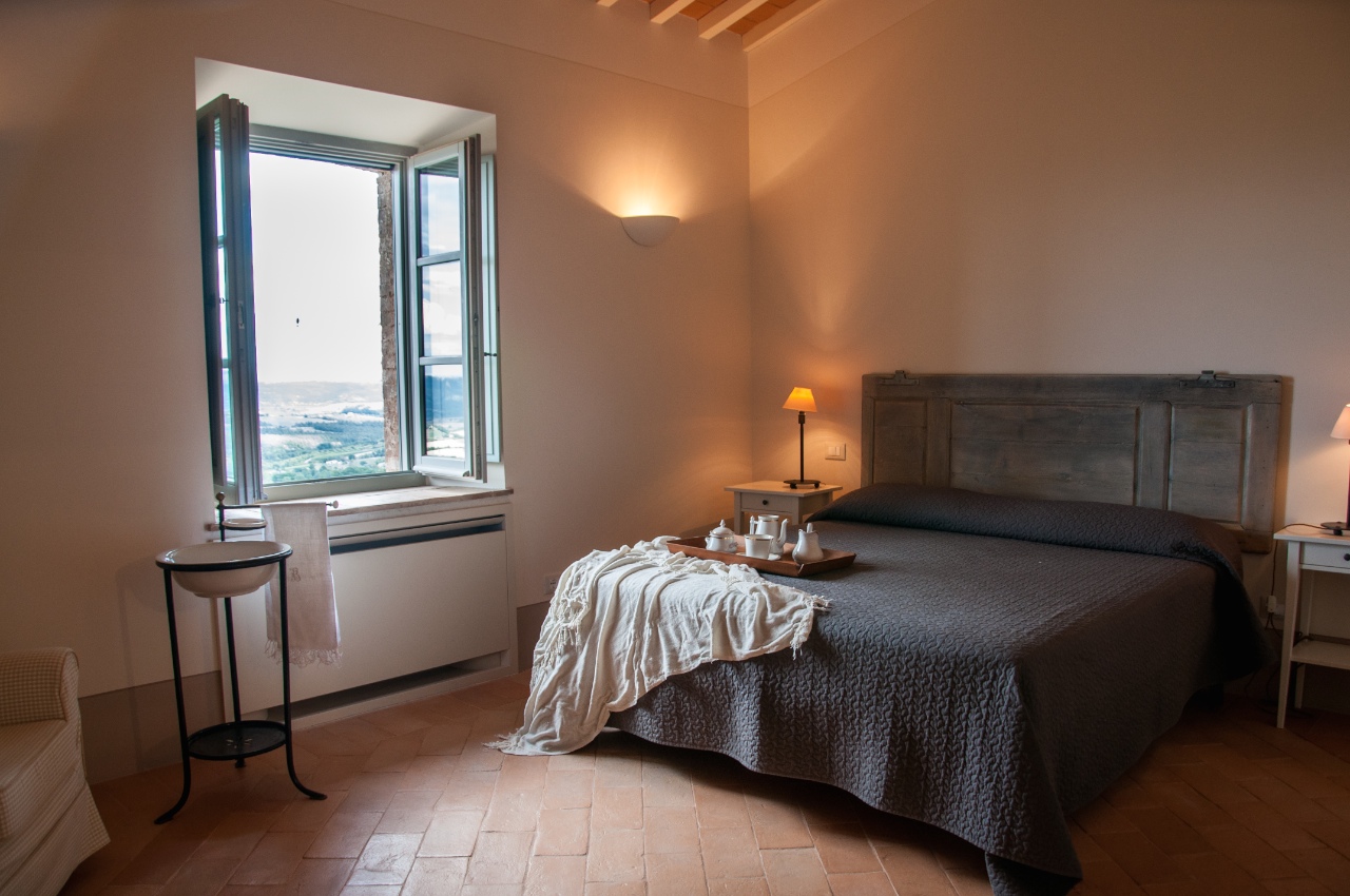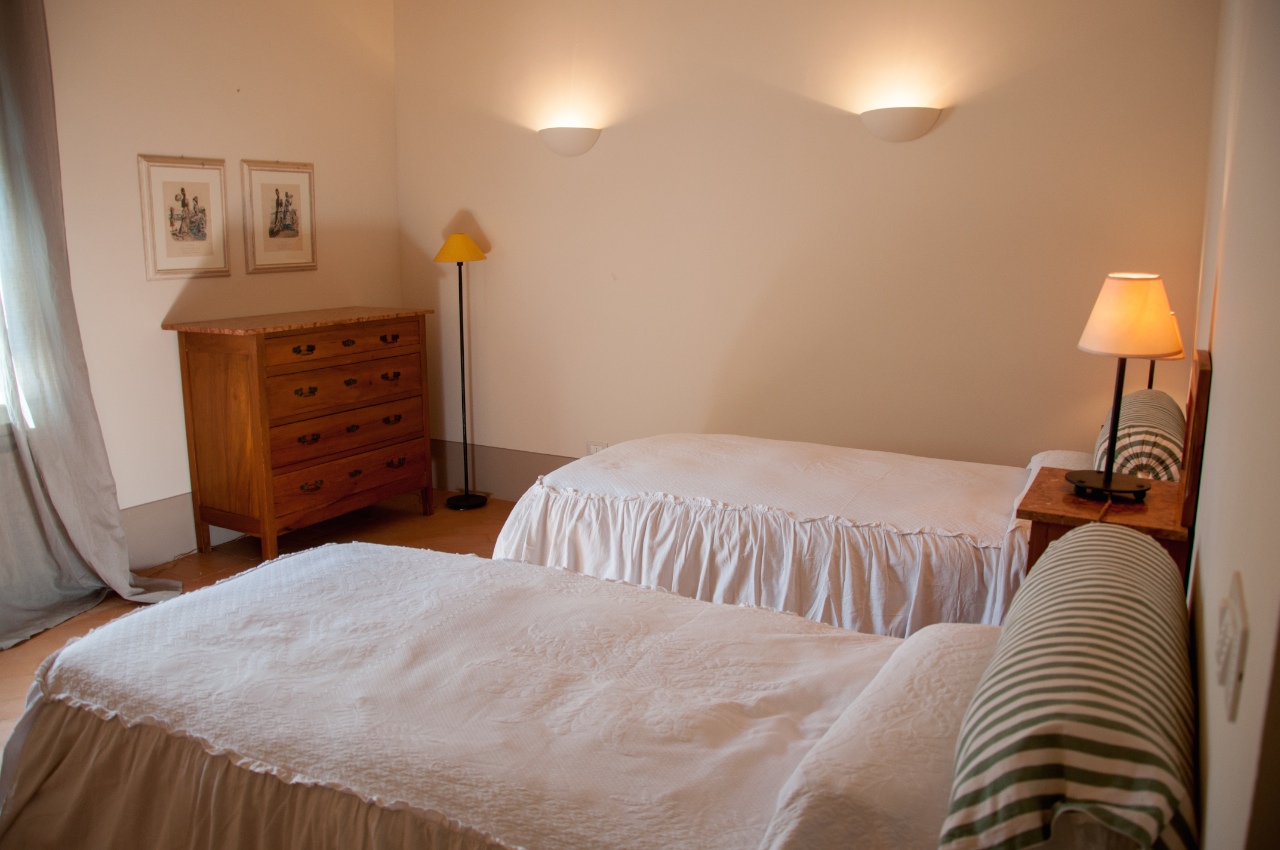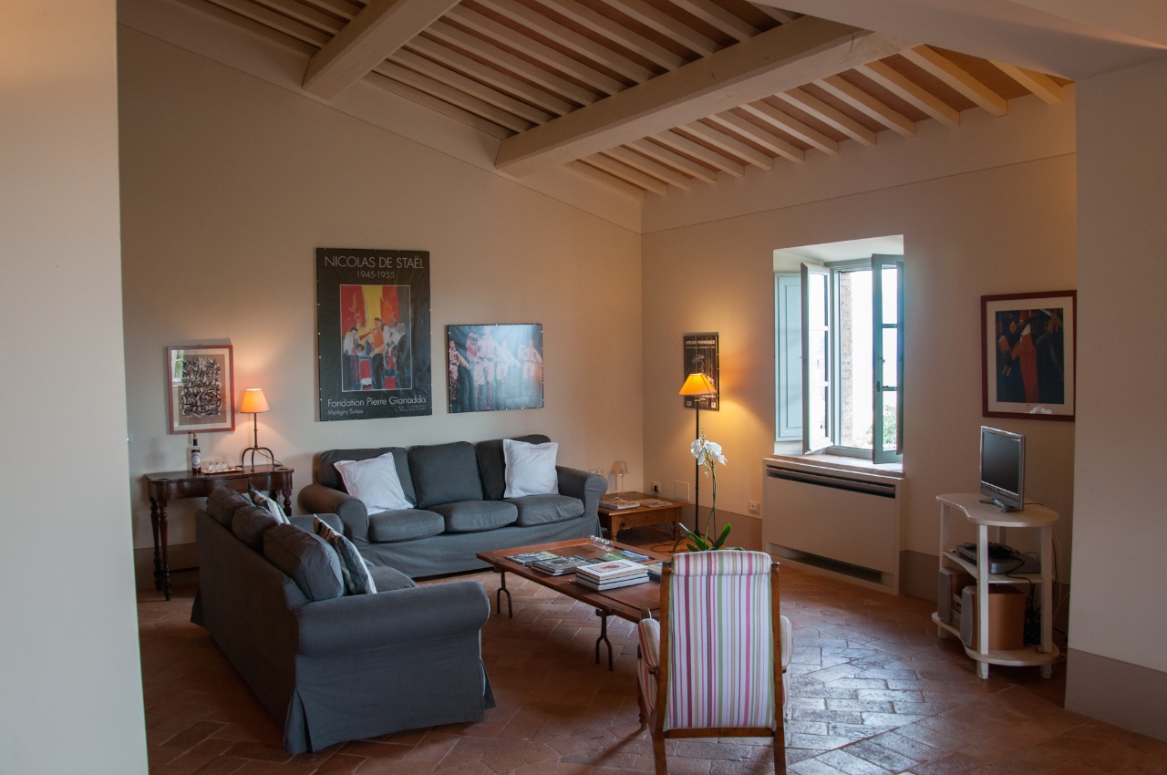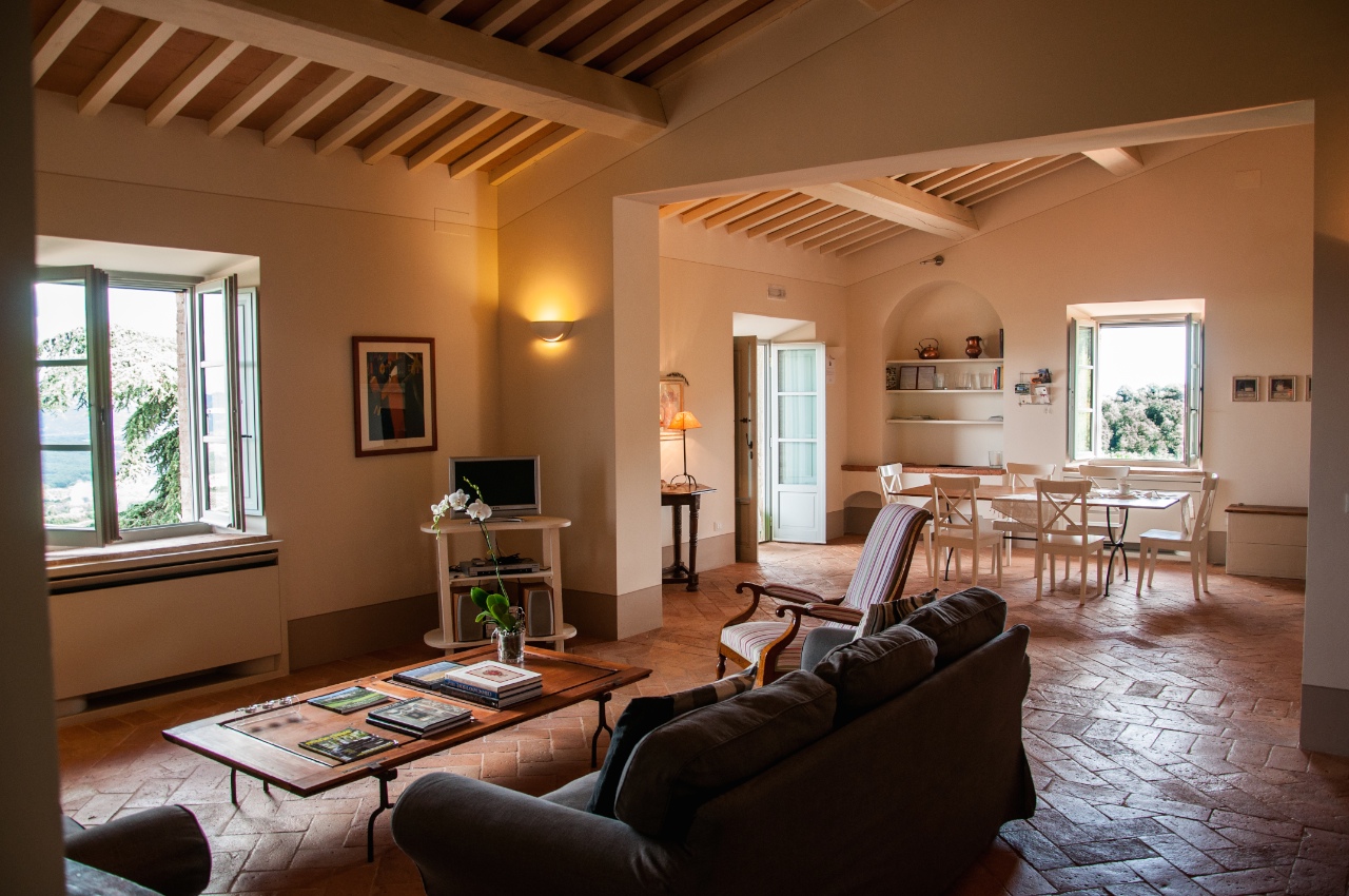 Het zespersoons appartement ligt op de eerste verdieping van de oorspronkelijke 'fattoria'. Vanuit de vensters heb je een prachtig uitzicht op de Val di Chiana en de heuvels van Umbrië.