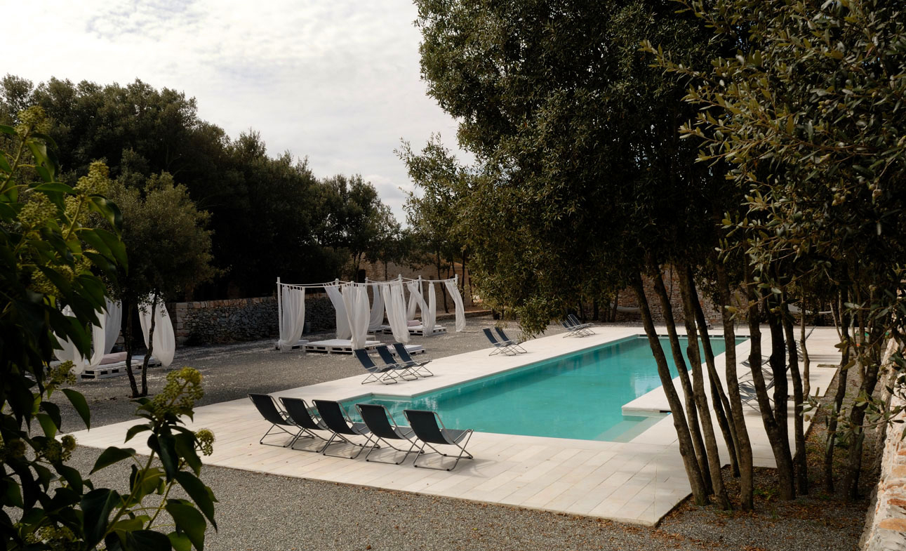 De eigenaren hebben de masseria met veel zorg en aandacht gerestaureerd. Het mysterieus ogende landschap is onaangetast gebleven. De ruime gastenverblijven zijn sober én smaakvol ingericht in natuurlijke tinten. Iedereen beschikt over een eigen terras. In de tuin ligt een groot zwembad omgeven door eikenbomen. Dagelijks wordt een uitgebreid -hartig én zoet- ontbijt geserveerd.